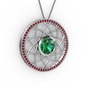 Yeşil kuvars ve garnet 18 ayar beyaz altın kolye (40 cm gümüş rolo zincir)