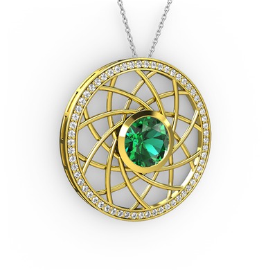 Yeşil kuvars ve pırlanta 18 ayar altın kolye (0.66 karat, 40 cm beyaz altın rolo zincir)