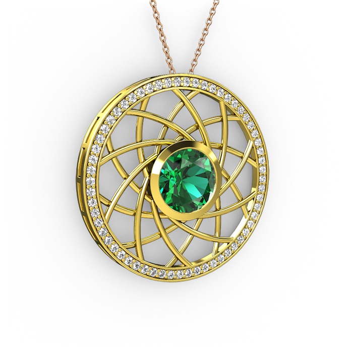Yeşil kuvars ve pırlanta 18 ayar altın kolye (0.66 karat, 40 cm rose altın rolo zincir)