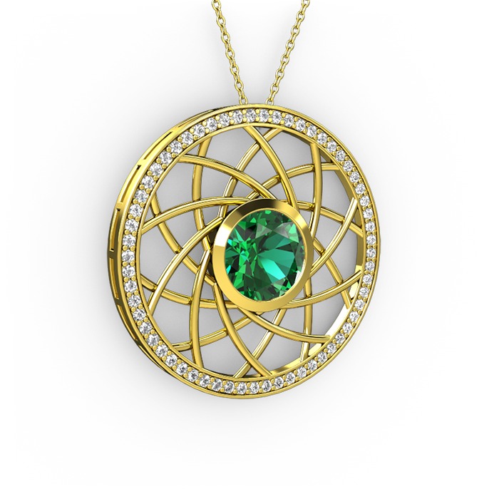 Yeşil kuvars ve pırlanta 8 ayar altın kolye (0.66 karat, 40 cm altın rolo zincir)