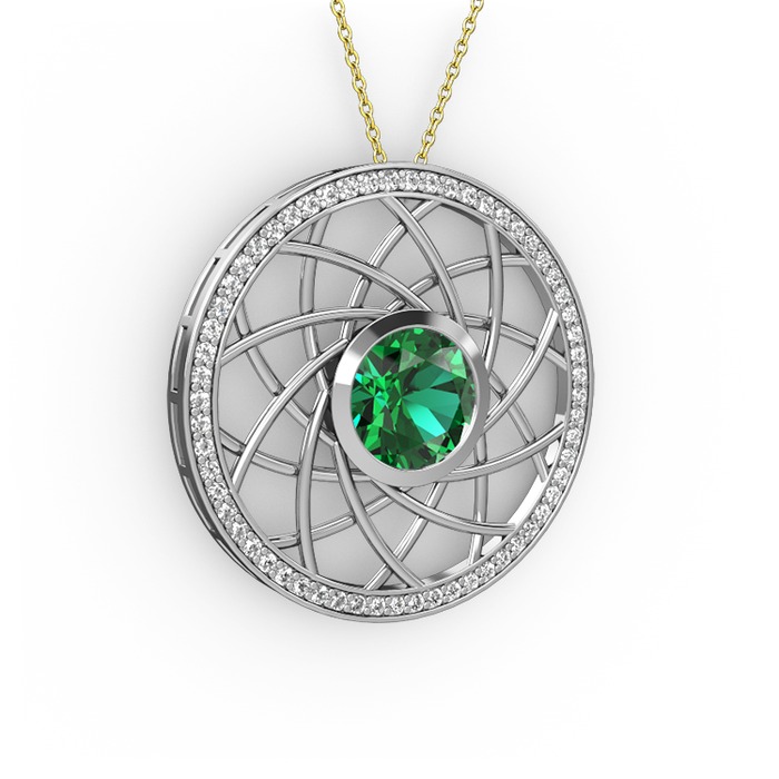 Yeşil kuvars ve pırlanta 925 ayar gümüş kolye (0.66 karat, 40 cm gümüş rolo zincir)