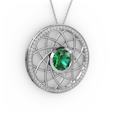 Yeşil kuvars ve swarovski 8 ayar beyaz altın kolye (40 cm beyaz altın rolo zincir)