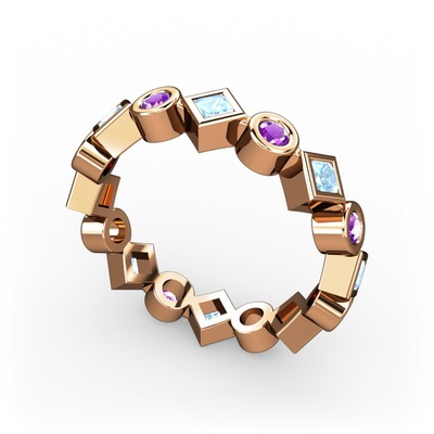 Akuamarin ve ametist 18 ayar rose altın yüzük