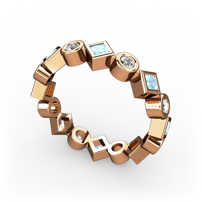 Akuamarin ve pırlanta 8 ayar rose altın yüzük (0.42 karat)