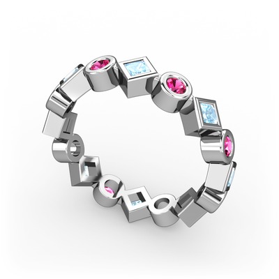 Akuamarin ve rodolit garnet 925 ayar gümüş yüzük
