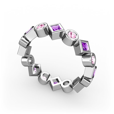 Ametist ve pembe kuvars 14 ayar beyaz altın yüzük