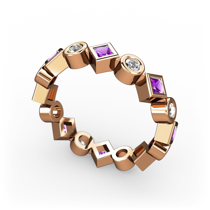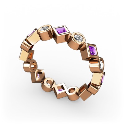 Ametist ve pırlanta 18 ayar rose altın yüzük (0.42 karat)