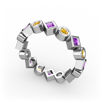 Ametist ve sitrin 18 ayar beyaz altın yüzük
