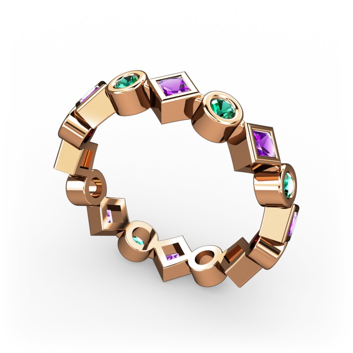 Ametist ve yeşil kuvars 14 ayar rose altın yüzük