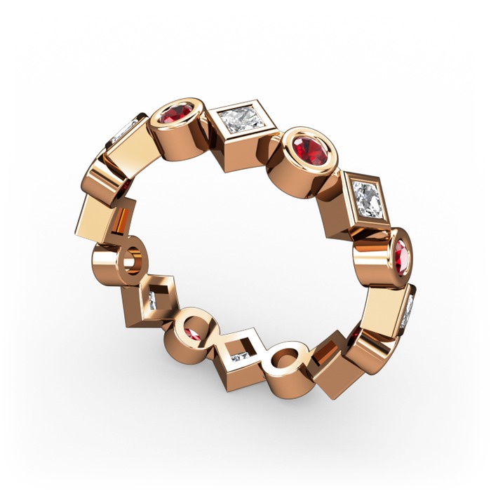 Beyaz zirkon ve garnet 18 ayar rose altın yüzük