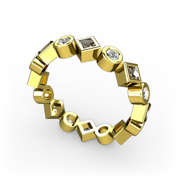 Dumanlı kuvars ve beyaz zirkon 8 ayar altın yüzük