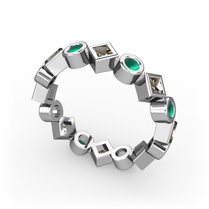 Dumanlı kuvars ve kök zümrüt 18 ayar beyaz altın yüzük