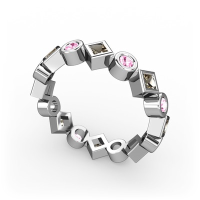 Dumanlı kuvars ve pembe kuvars 925 ayar gümüş yüzük
