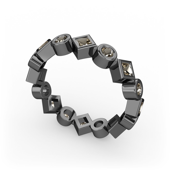 Dumanlı kuvars 925 ayar siyah rodyum kaplama gümüş yüzük