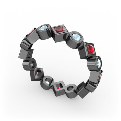 Garnet ve akuamarin 925 ayar siyah rodyum kaplama gümüş yüzük