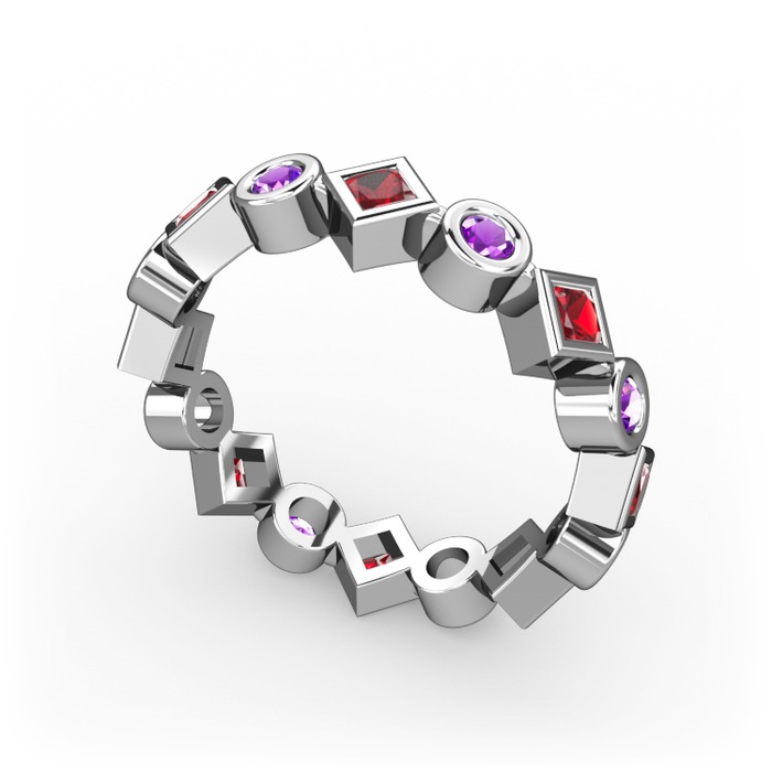 Garnet ve ametist 8 ayar beyaz altın yüzük