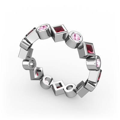 Kök yakut ve pembe kuvars 925 ayar gümüş yüzük