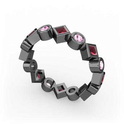 Kök yakut ve pembe kuvars 925 ayar siyah rodyum kaplama gümüş yüzük
