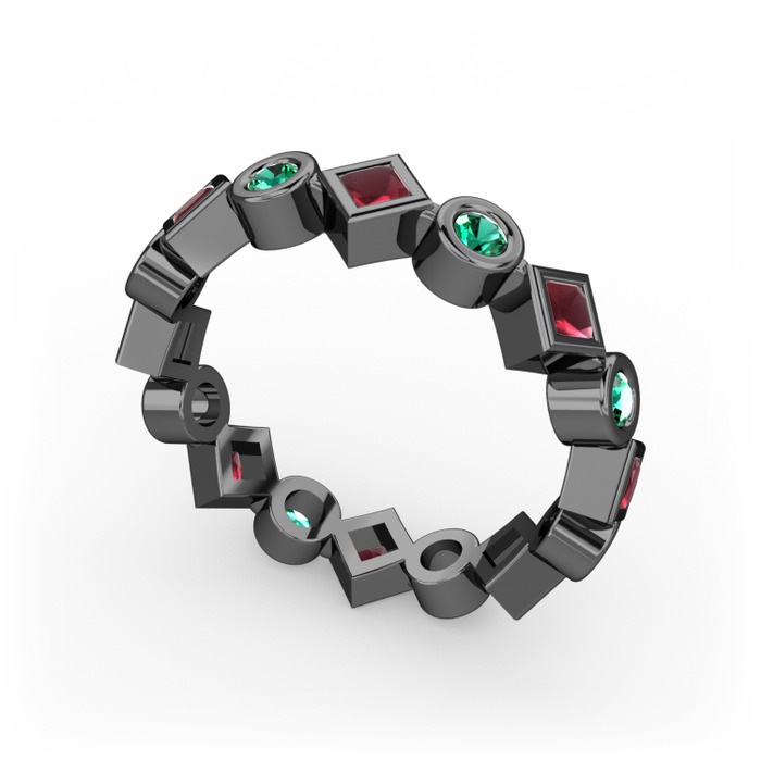 Kök yakut ve yeşil kuvars 925 ayar siyah rodyum kaplama gümüş yüzük
