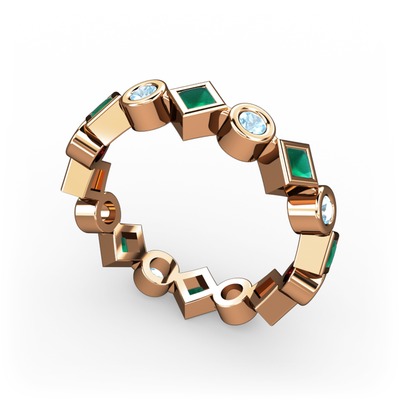 Kök zümrüt ve akuamarin 8 ayar rose altın yüzük