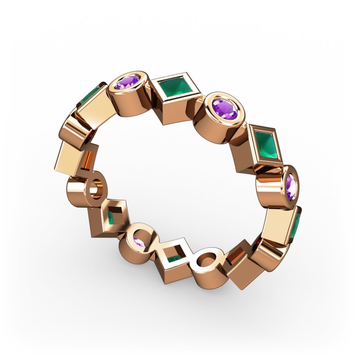 Kök zümrüt ve ametist 14 ayar rose altın yüzük