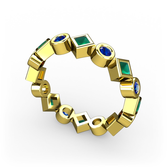 Kök zümrüt ve lab safir 14 ayar altın yüzük