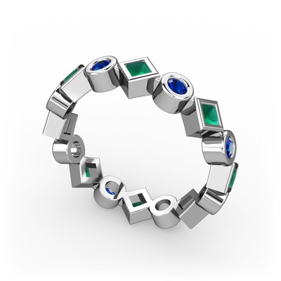 Kök zümrüt ve lab safir 18 ayar beyaz altın yüzük