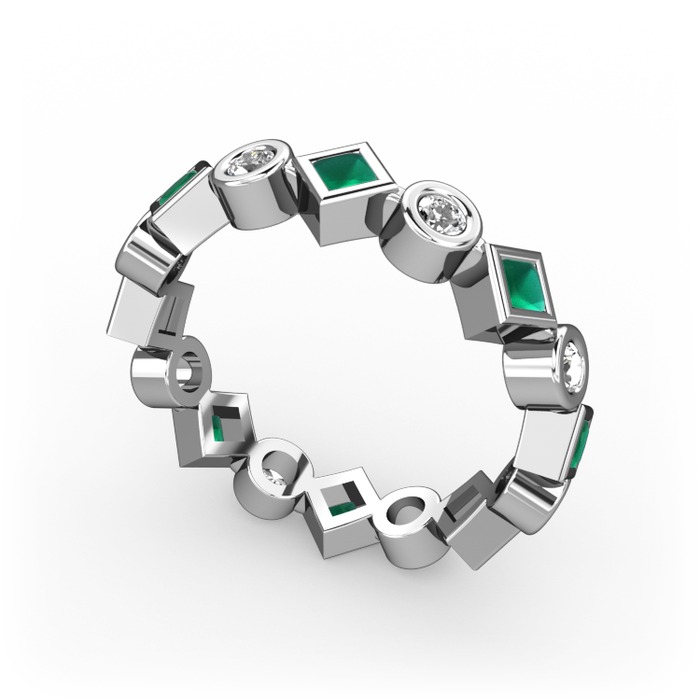Kök zümrüt ve pırlanta 14 ayar beyaz altın yüzük (0.42 karat)