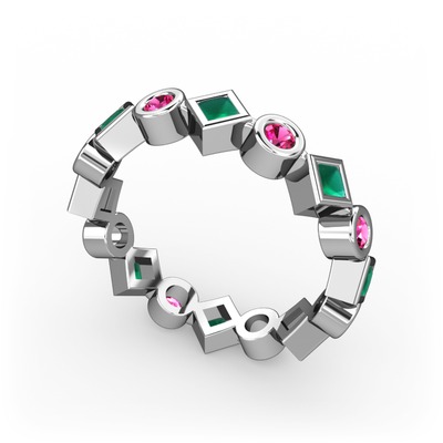 Kök zümrüt ve rodolit garnet 925 ayar gümüş yüzük