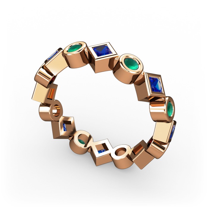 Lab safir ve kök zümrüt 14 ayar rose altın yüzük