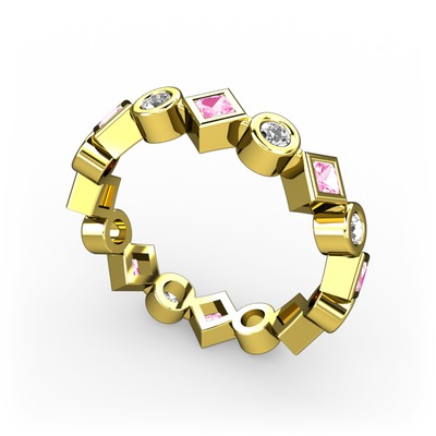 Pembe kuvars ve beyaz zirkon 8 ayar altın yüzük