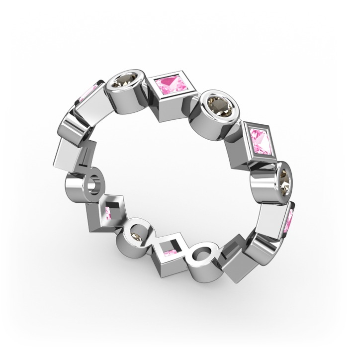 Pembe kuvars ve dumanlı kuvars 14 ayar beyaz altın yüzük