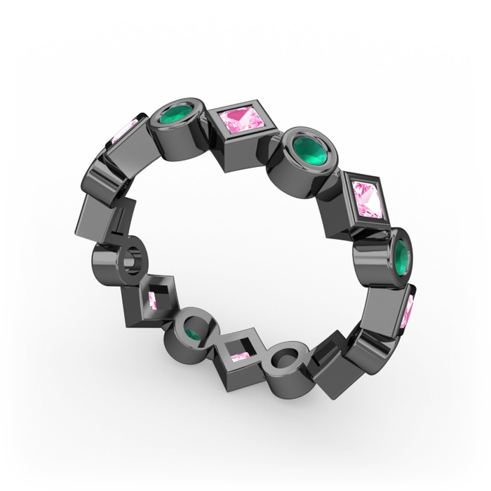 Pembe kuvars ve kök zümrüt 925 ayar siyah rodyum kaplama gümüş yüzük