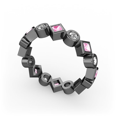 Pembe kuvars ve pırlanta 925 ayar siyah rodyum kaplama gümüş yüzük (0.42 karat)