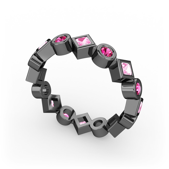 Pembe kuvars ve rodolit garnet 925 ayar siyah rodyum kaplama gümüş yüzük