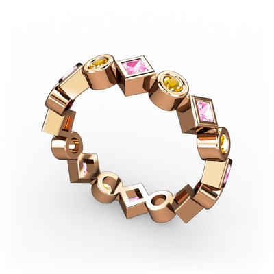 Pembe kuvars ve sitrin 14 ayar rose altın yüzük