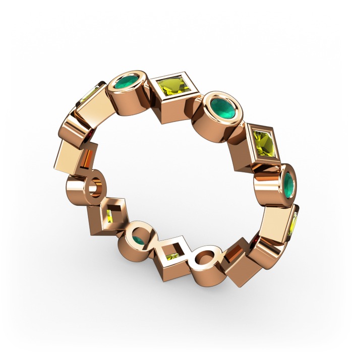 Peridot ve kök zümrüt 14 ayar rose altın yüzük