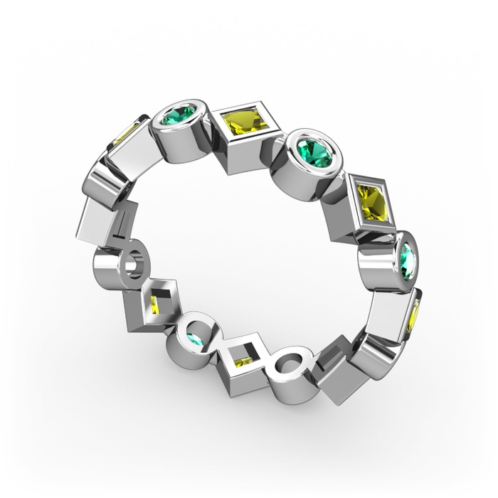 Peridot ve yeşil kuvars 925 ayar gümüş yüzük
