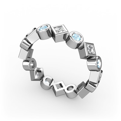 Pırlanta ve akuamarin 8 ayar beyaz altın yüzük (1.05 karat)