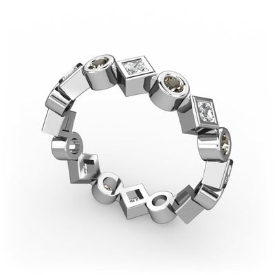 Pırlanta ve dumanlı kuvars 8 ayar beyaz altın yüzük (1.05 karat)