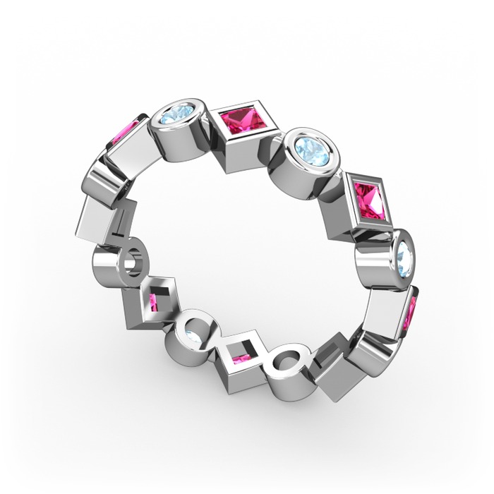 Rodolit garnet ve akuamarin 14 ayar beyaz altın yüzük