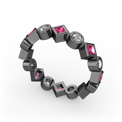 Rodolit garnet ve beyaz zirkon 925 ayar siyah rodyum kaplama gümüş yüzük