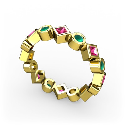 Rodolit garnet ve kök zümrüt 925 ayar altın kaplama gümüş yüzük