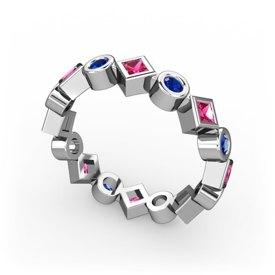 Rodolit garnet ve lab safir 14 ayar beyaz altın yüzük