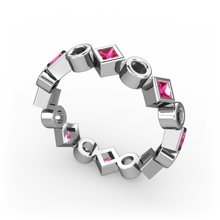 Rodolit garnet ve siyah zirkon 18 ayar beyaz altın yüzük