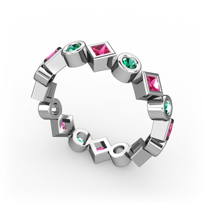 Rodolit garnet ve yeşil kuvars 14 ayar beyaz altın yüzük