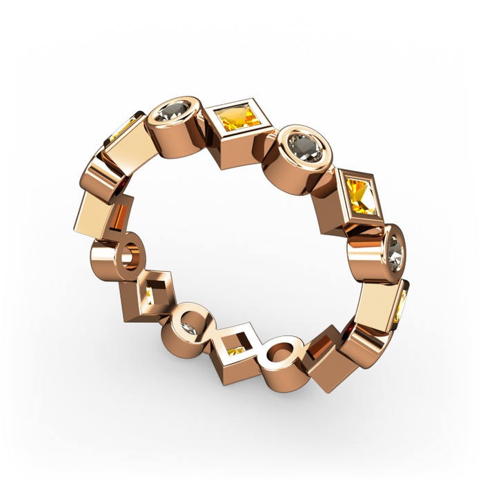 Sitrin ve dumanlı kuvars 18 ayar rose altın yüzük