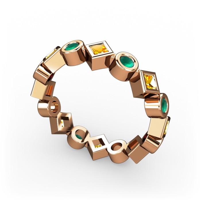 Sitrin ve kök zümrüt 14 ayar rose altın yüzük