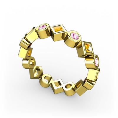 Sitrin ve pembe kuvars 18 ayar altın yüzük