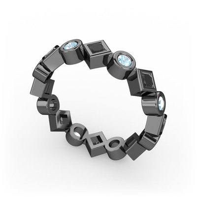 Siyah zirkon ve akuamarin 925 ayar siyah rodyum kaplama gümüş yüzük